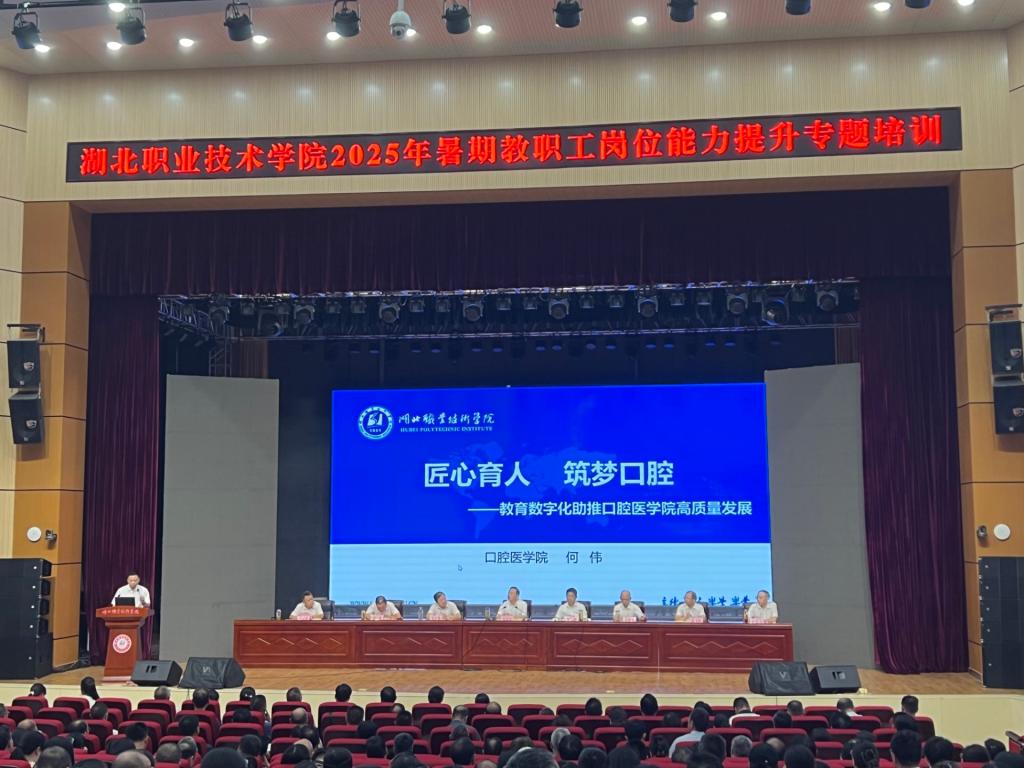 8月29日,在2025年教职工岗位能力提升专题培训会上,澳门十大信誉网赌大全院长何伟以“匠心育才,筑梦口腔”为主题作交流发言,系统阐述学院在专业建设、人才培养、产教融合及社会服务领域的创新实践。