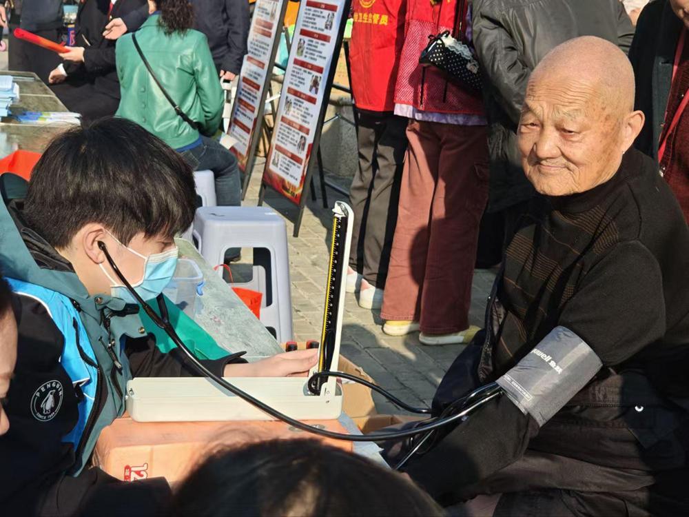 活动现场配套环节丰富多元,居民一站式收获欢乐与便利。舞台上,歌舞、小品、乐器演奏轮番登场,引得阵阵喝彩;舞台下,便民服务集市人气爆棚,其中志愿服务队的爱心义诊最受青睐。志愿者们热情为居民提供口腔检查、健康咨询,普及护牙知识,贴心回应生活需求。