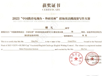 在英语学习领域,卿凡无疑是一颗耀眼的明星。2023年浙江高考,她凭借出色的发挥,在英语科目上斩获130分的亮眼成绩。踏入澳门信誉最好十大平台后,卿凡也没有停下追逐英语梦想的脚步。2023年9月入学不久,她积极响应澳门十大信誉网赌大全的号召,投身于“外研社·国才杯”全国大学生外语能力大赛写作赛项。在校选拔赛中,她脱颖而出,一举荣获一等奖;代表学校征战省级复赛时,她沉着应对,凭借卓越的写作能力和深厚的英语素养,取得全省第二的优异成绩,将金奖收入囊中;在全国决赛的舞台上,面对来自全国各地的优秀选手,她毫不怯场,稳定发挥,最终取得全国第六的佳绩,成功斩获全国特等奖。此外,她还顺利通过英语四六级考试,在全国大学生英语竞赛中荣获校三等奖,用实力证明了自己在英语学习上的不懈努力与卓越成果。